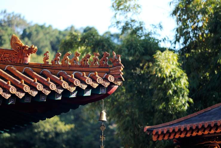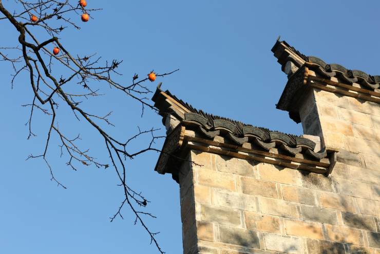 屋脊獸飾的總稱吻獸,吻獸跟挑角多彩當(dāng)屬寺廟祠堂建筑上,挑角又名翅角、撓角。平遙古城深藏著珍稀的人物驅(qū)獸屋脊圖。昆明圓通寺屋頂正中的寶塔氣派端正,翅角飛禽走獸象是在排隊(duì)觀日出。山東徐福家鄉(xiāng)紀(jì)念性建筑物,徐公祠大殿翅角獸伸著脖子像在嗅盛開的櫻花?;罩莨僬蓓?shù)镊梓腼@示著此處宅院與民宅不同。塔川柿子熟了遲遲不愿離開枝頭,膩著相處多日的翅角竊竊私語。古城臨安天君廟的挑角,向著無暇天空笑靨如花。