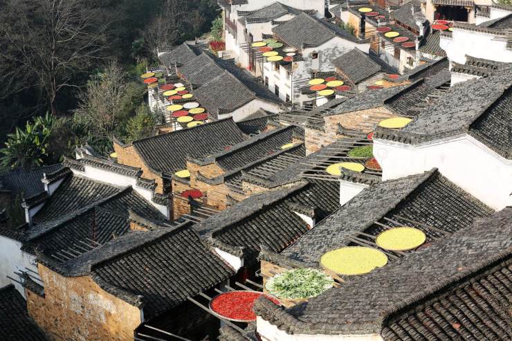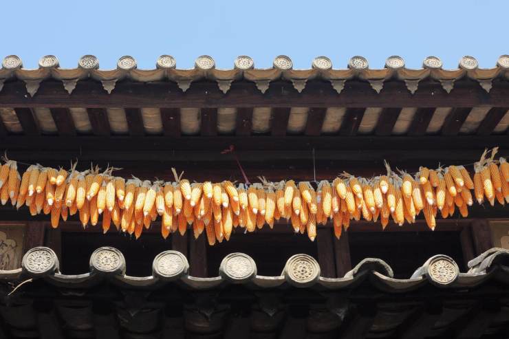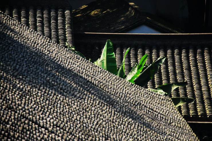 單說用量多寡,小青瓦當(dāng)屬老大,她還有個(gè)美麗的別名蝴蝶瓦,又名陰陽瓦,廣泛應(yīng)用在屋宇建筑上,江南江北身影重重。江西婺源人家屋頂黛色板瓦,因著大塊艷麗秋色,華美跳躍。六和塔下房屋間逸出一叢芭蕉,不知是瓦因著芭蕉清新,還是芭蕉因著青瓦含蓄。秋至皖南,人家的房頂落葉覆蓋,雨過天晴水汽縈繞恍惚出水墨顏色。靜升王家單色青瓦覆頂,不著異色卻整整當(dāng)?shù)闷鹈耖g故宮名頭。甪直古鎮(zhèn)青磚小瓦馬頭墻,隱含著書香門第的典雅。河街并行的婉約水鄉(xiāng),那屋瓦也文靜靈秀款款深情。年幼時(shí)膠東老家的青黛小瓦,比著當(dāng)下張揚(yáng)的大紅瓦多了古遠(yuǎn)深邃跟幽謐。