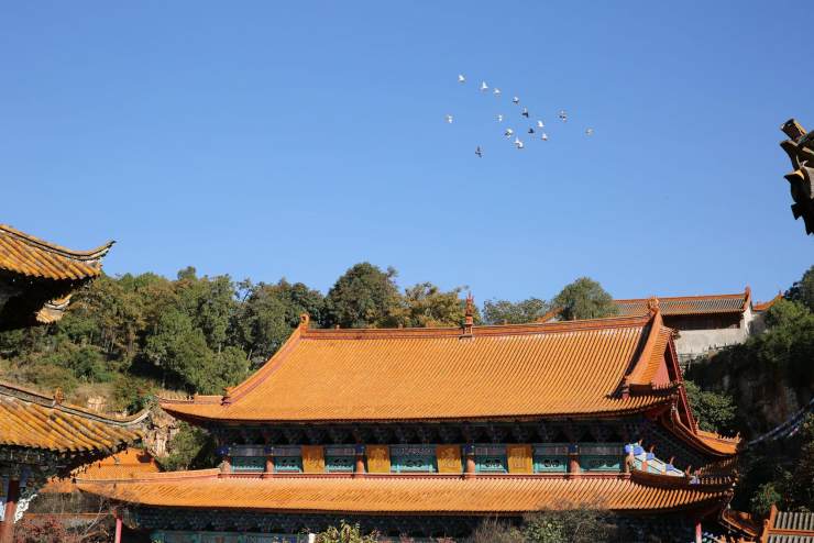 琉璃瓦身段尊貴,現(xiàn)身于帝王天家、寺廟?;食窍喔o(hù)城墻一角的琉璃瓦亭,歷經(jīng)百年雨霜磨礪依然閃耀康熙帝賜給股肱之臣的無上榮光。彩云之南澄碧天空下一群白鴿飛過黃色琉璃瓦的屋頂,給莊嚴(yán)的佛堂添了隨和。蜚聲四海的晉祠藍(lán)灰相間的大殿頂,冷靜中素麗。