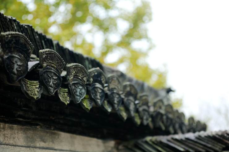 瓦當(dāng)、屋脊跟挑角是瓦中多彩美貌的成員。瓦當(dāng),古代建筑中覆蓋建筑檐頭筒瓦前端的遮擋,又名封頭瓦。她起始于東漢和西漢時(shí)期,用以裝飾美化和蔽護(hù)建筑物檐頭的建筑附件。瓦當(dāng)上刻有文字、圖案,有云頭紋、幾何形紋、饕餮紋、文字紋、動物紋等等,為精致的藝術(shù)品,屬于中國古典建筑特有的形制,多是圓型。