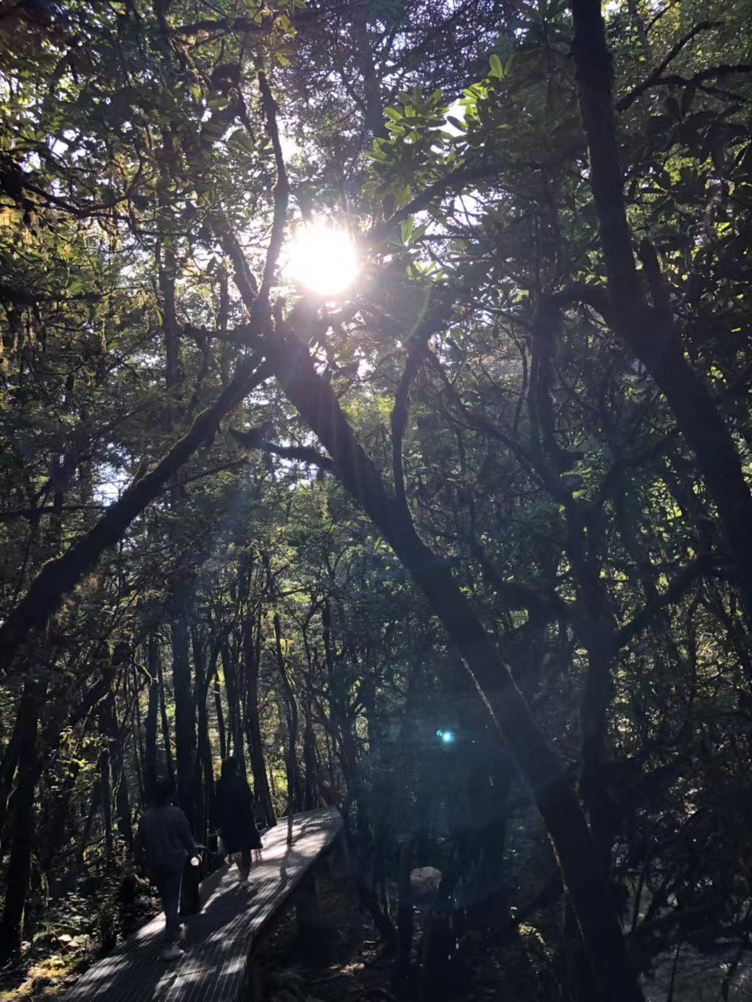 隨后乘觀光車經(jīng)一號營地、二號營地、穿越原始森林,沿途欣賞河谷原始森林風光,感受 “一山觀四季、十里不同天”的氣象變遷。