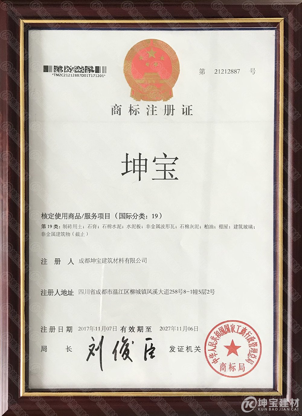 成都坤寶建筑材料有限公司一直堅(jiān)持走“綠色、低碳、環(huán)保、節(jié)能”宗旨,致力在各界政府行業(yè)協(xié)會(huì)的幫助下,成為315誠信品牌單位,是成都坤寶建筑材料有限公司的榮耀,也是““坤寶合成樹脂瓦”品牌的見證。
