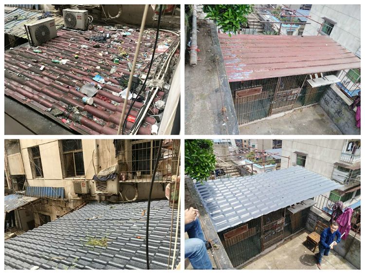 西市街道“雙創(chuàng)”鋼棚整治工作換合成樹脂瓦