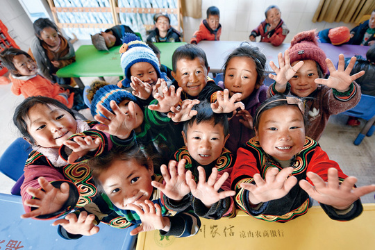 增強(qiáng)健康意識(shí),養(yǎng)成良好衛(wèi)生習(xí)慣,要從娃娃抓起。圖為涼山州昭覺(jué)縣四開(kāi)鄉(xiāng)灑瓦洛且博村幼教點(diǎn),小朋友們展示自己干凈的小手。 楊樹(shù)/攝