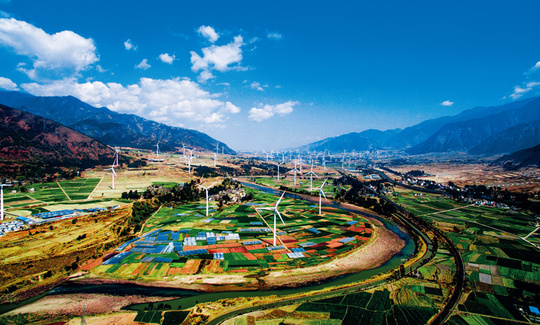 涼山州光能、風(fēng)能等資源豐富,風(fēng)電等產(chǎn)業(yè)變“動(dòng)能”,幫助群眾脫貧增收。圖為涼山州德昌縣安寧河峽谷的風(fēng)電基地。 冷文浩/攝
