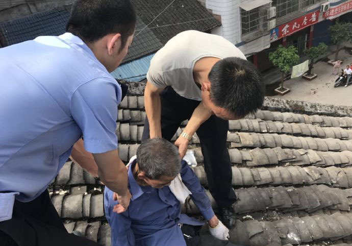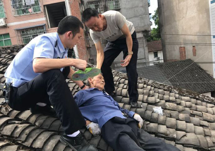 近日,渠縣公安巖峰派出所接到轄區(qū)群眾報警稱:在巖峰鎮(zhèn)文化街的78歲老人劉某在自家房頂蓋樹脂瓦中暑昏迷了。