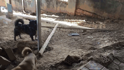 阿姨打開(kāi)大門(mén),狗狗們都興奮得狂吠,將她圍成幾圈。幾天的連續(xù)降雨讓它們身上都濕噠噠的,下半身滾滿了泥土。然而,它們并不知道,這連續(xù)的降雨究竟給它們的家造成了什么麻煩,還是興高采烈地玩鬧著。