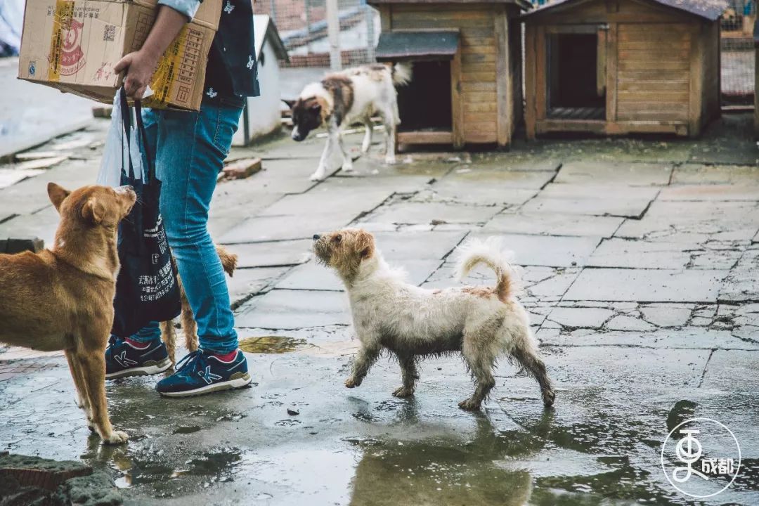 “但凡下雨天,人家都朝屋里走,我們卻是往山上走。為啥子喃?看狗噠嘛!”在雙流區(qū)尖山坡,陳阿姨領(lǐng)著我們,冒著蒙蒙細(xì)雨朝愛(ài)之家動(dòng)物救助中心走。長(zhǎng)筒黑色膠鞋是雨天標(biāo)配。
