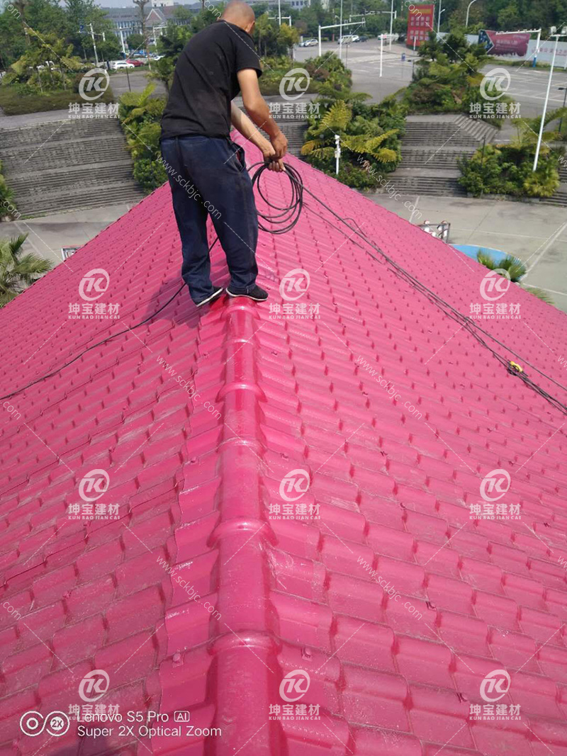 來自瀘州客戶樹脂瓦案例分享:瀘州歡樂派海灘公園游客中心屋頂換瓦項目,面積約4000平米,采用三層白底棗紅色3.0厚樹脂瓦,艷麗光鮮,顏色持久!聽說這個游樂場的老板是個畫圖高手,能手工畫3D圖,頗有藝術(shù)家風格!有要去歡樂派海灘公園玩的找我來定門票,有優(yōu)惠