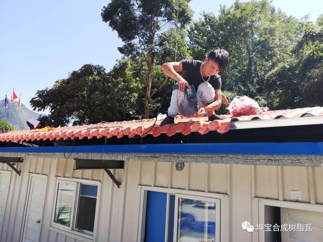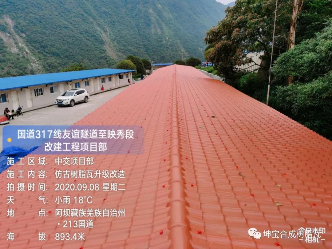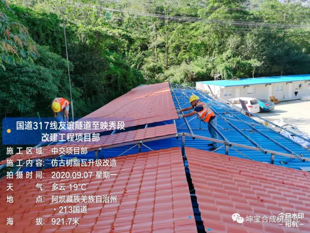 中交路橋集團(tuán)國(guó)道317線隧道至映秀段改建工程項(xiàng)目部屋頂加蓋樹脂瓦工程,接下來(lái)看樹脂瓦加蓋屋面的部分效果!