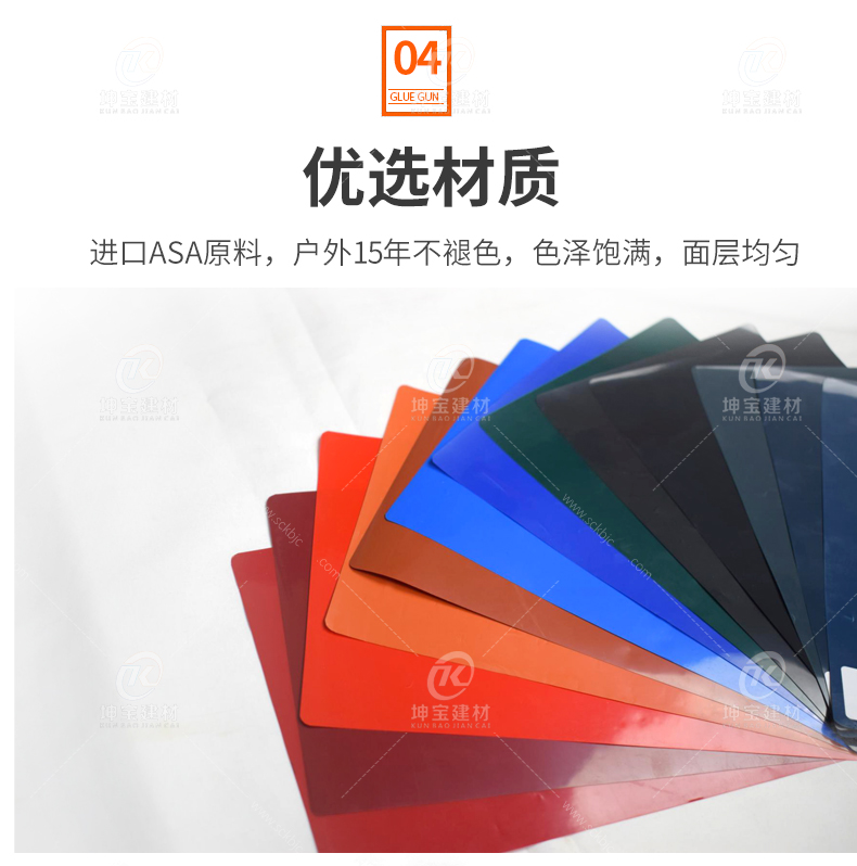 材質(zhì):面層asa膜+三層共擠技術(shù)