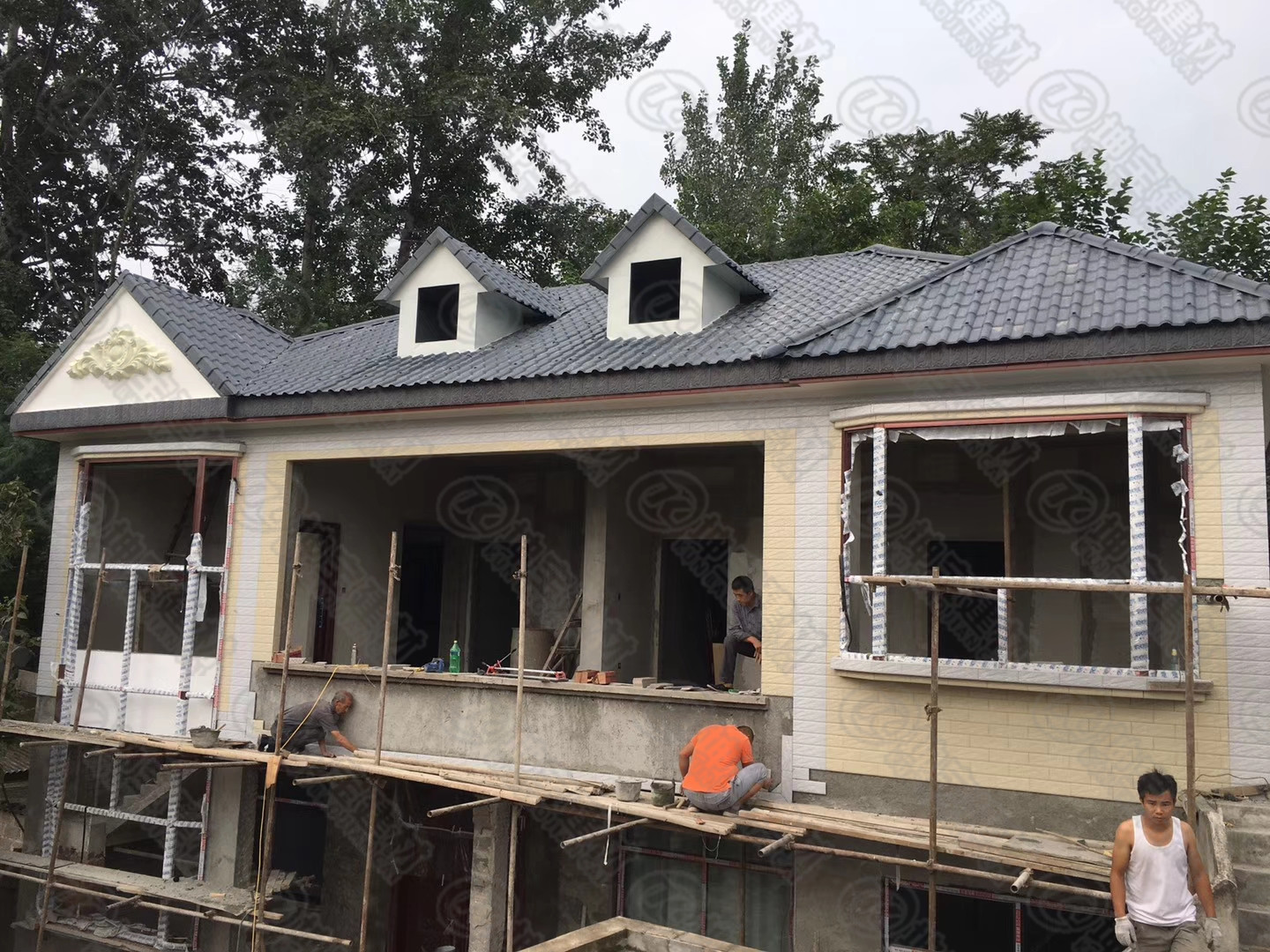 這分明是小別墅,怎能說(shuō)成“茅草房”?難不成欺負(fù)我讀書(shū)少,別墅、茅草房都認(rèn)不出來(lái)嗎?親,其實(shí)從某種意義上說(shuō),這個(gè)還真是“茅草房”。看見(jiàn)別墅的屋面了沒(méi)?那主要是由田間的秸稈生產(chǎn)的,也就是***早我們用來(lái)蓋房屋的茅草。秸稈變成秸稈瓦,僅僅換了一次裝,竟能美得這般不像樣!