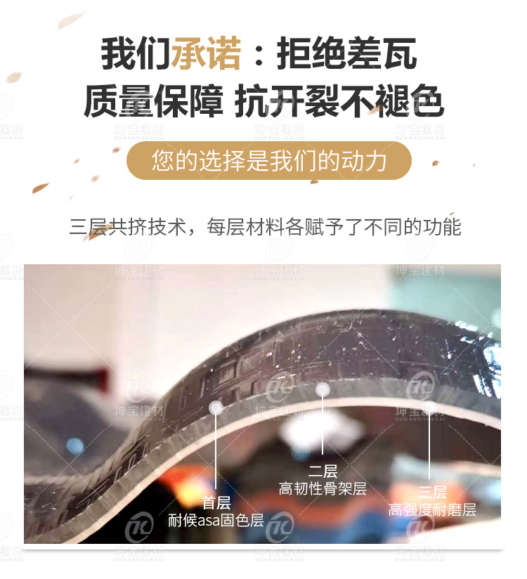 采用新設(shè)備,數(shù)字化自動(dòng)生產(chǎn),6年合成樹(shù)脂瓦專(zhuān)業(yè)生產(chǎn)經(jīng)驗(yàn),嚴(yán)把質(zhì)量關(guān)。