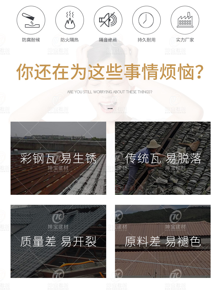 用途:平改坡屋面,別墅屋面,農(nóng)村自建房屋面,民宅屋面,工業(yè)廠房,仿古建筑,涼亭圍墻裝飾等